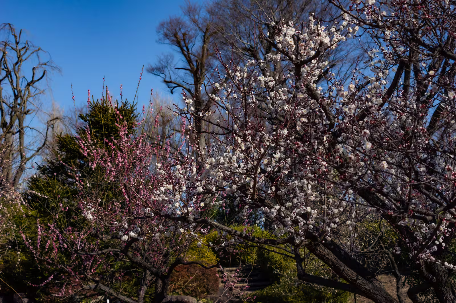 In 2017, my visit to Hanegi Park near for the annual plum blossom season was nothing short of magical. That particular week in Tokyo was graced with brilliant blue skies just like at Yushima Tenjin a week earlier. It was a memorable season for flower photography.